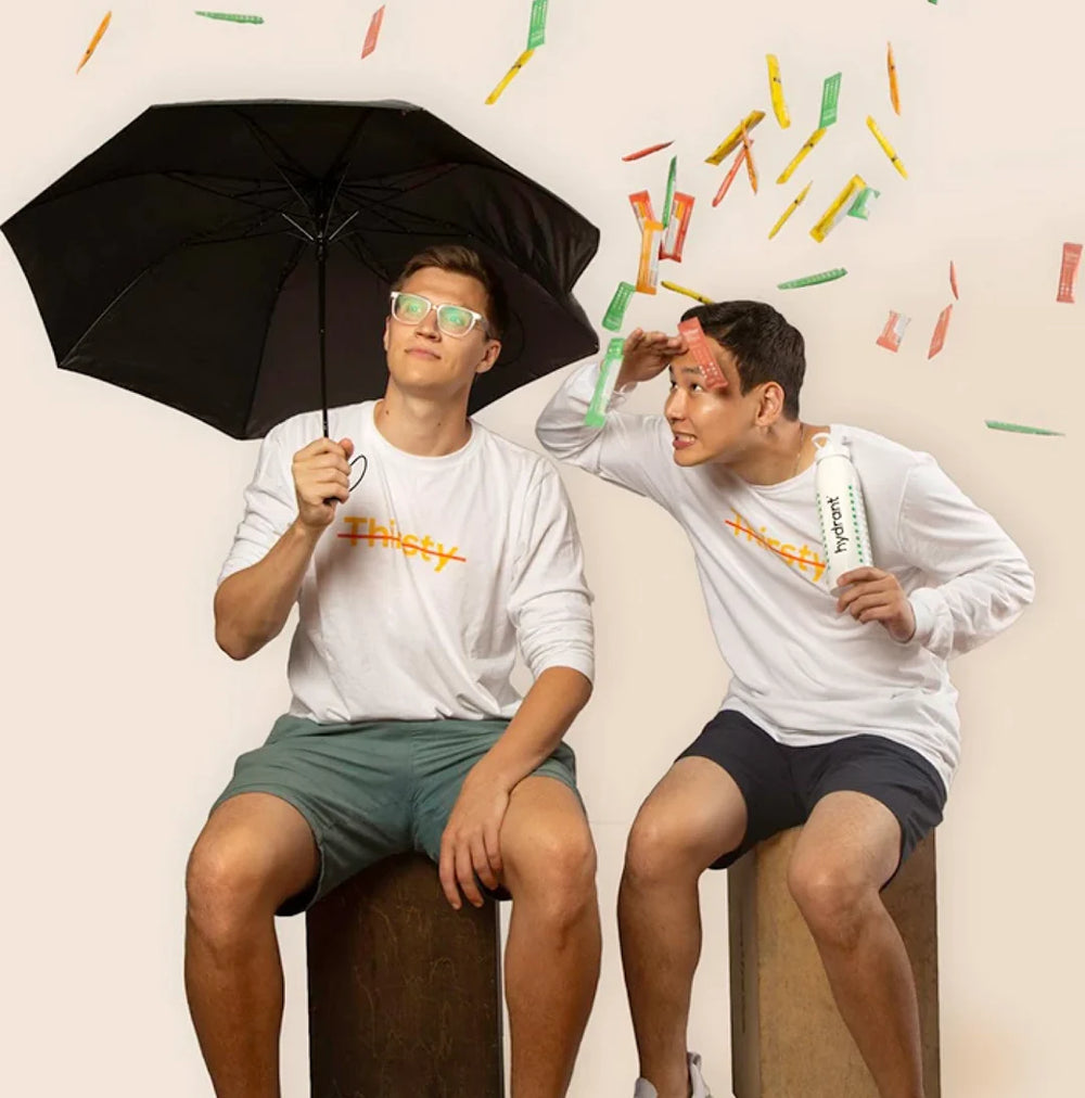 What do you do when your back’s against the wall? You get to work. Jai dropped out of business school, invested his tuition money, and John threw on his lab coat and experimented to launch our first flavor of Hydrant. And we haven't stopped since. Take that dehydration.